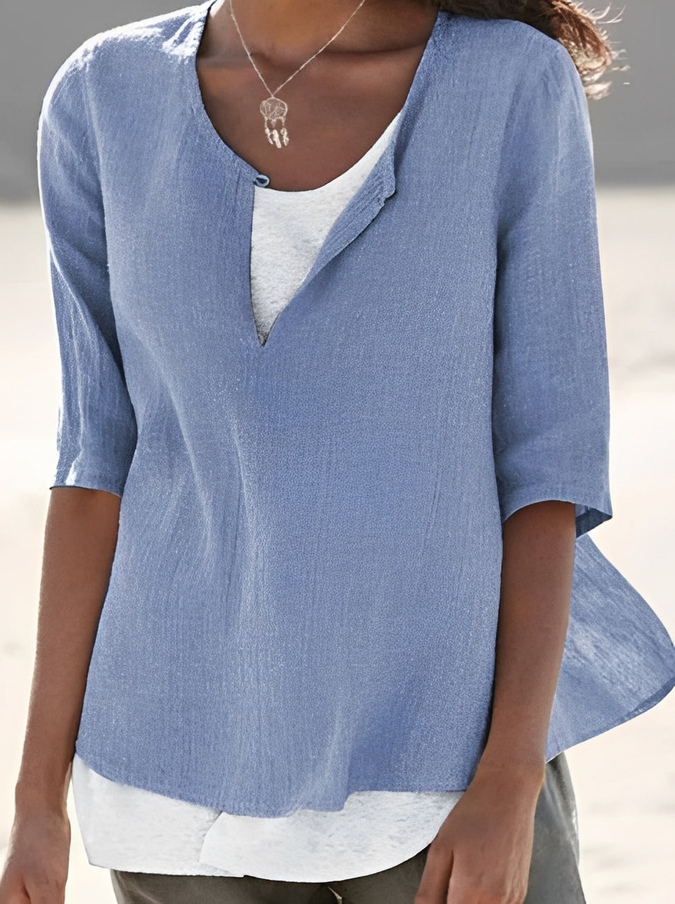 Charlie - Camisa de corte holgado casual con mangas 3/4 para damas