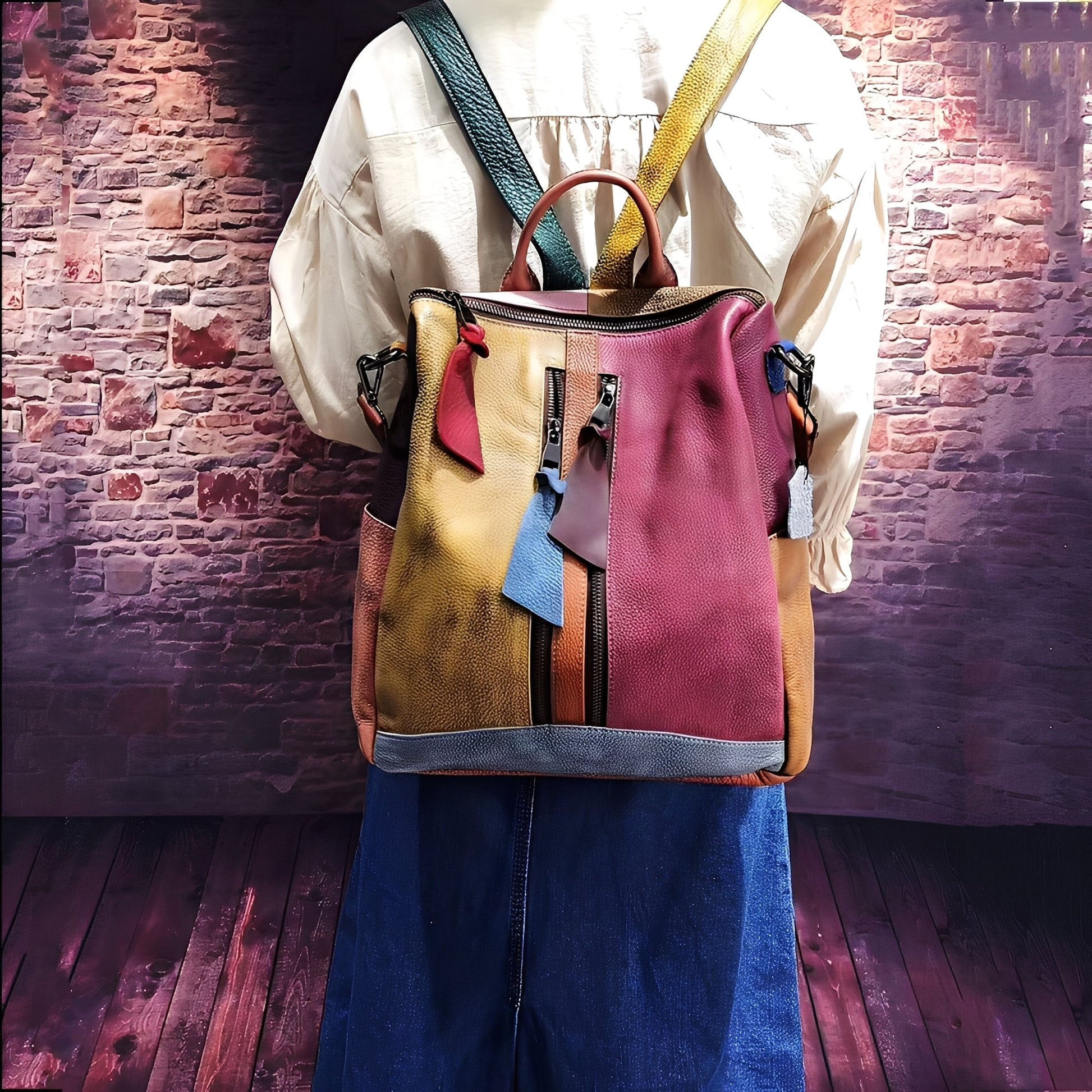 El bolso Alayna combina dos funciones en una: se puede usar tanto como un elegante bolso de mano como una mochila práctica. Hecho con cuero genuino de alta calidad, no solo ofrece un look sofisticado, sino también resistencia para el uso diario. El diseño retro lo convierte en un acompañante atemporal para muchas ocasiones.