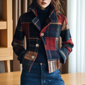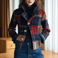 Aubriana - Chaqueta de cuadros retro con cuello alto para mujeres