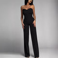 El mono "Briley" combina la elegancia femenina con un estilo actual. Su parte superior strapless y ajustada, junto con una cintura alta, realza la silueta con distinción. Las piernas anchas del pantalón aportan un equilibrio entre ligereza y estilo. Ideal para eventos formales, ocasiones nocturnas o momentos especiales donde quiera destacar con elegancia.