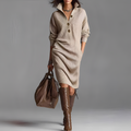 Camryn - Vestido actual de punto con botones y cuello para mujer
