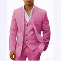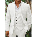 Impresiona con este elegante y moderno traje de lino de tres piezas que se destaca.