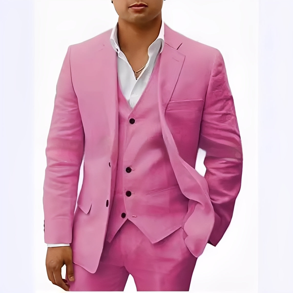 Confeccionado con una mezcla de lino de alta calidad, este traje brinda comodidad fresca y un estilo elegante, perfecto para bodas, reuniones de trabajo o eventos formales.