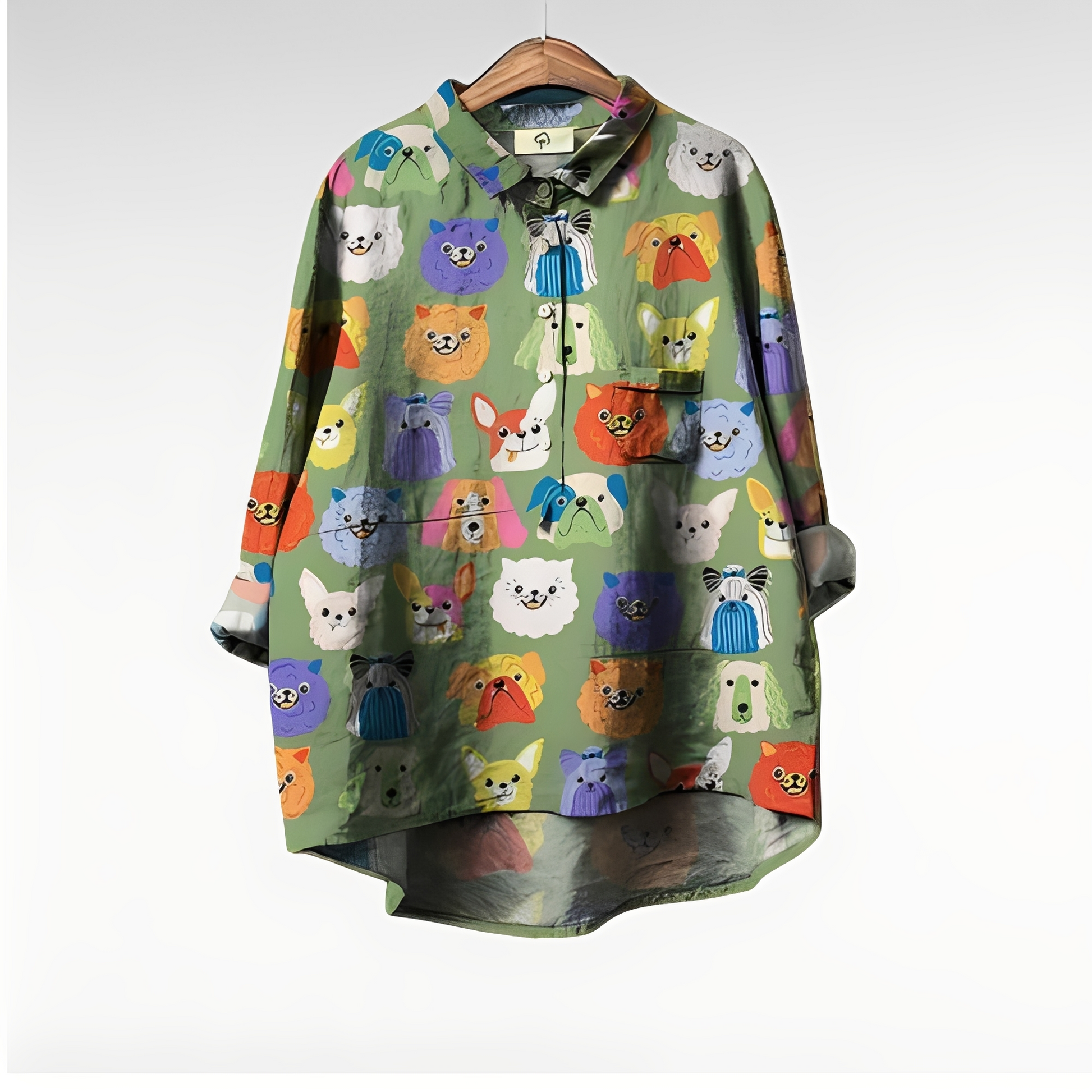 La blusa de manga larga para mujeres Eyden tiene un estampado de perro único y divertido que le agrega personalidad a tu vestuario. Fabricada con un tejido suave y transpirable, garantiza comodidad todo el día sin sacrificar el estilo. Su corte relajado y atemporal facilita su combinación con pantalones, faldas o jeans para un look casual o chic y desenfadado. Ligera y multifacética, es perfecta para el trabajo, el fin de semana o eventos especiales. Gracias a su diseño artístico, la blusa Eyden te permite destacar manteniendo un estilo sencillo.