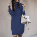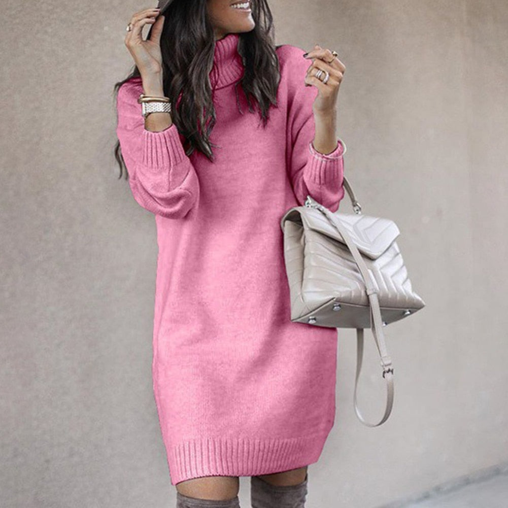 Manténgase elegante y abrigado con este cálido vestido de punto hasta la rodilla.
