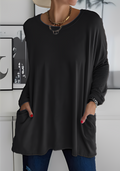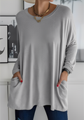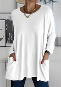 La blusa de manga larga "Krystle" se distingue por su corte amplio y su material agradable al tacto. Con sus bolsillos funcionales, combina utilidad y estilo, ideal para el uso diario, el tiempo libre o momentos relajados en casa. Su diseño simple y moderno la hace versátil y un básico esencial.