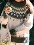 Este suéter destaca por su mezcla de tejido suave y un patrón noruego clásico que ofrece un toque elegante a cualquier vestimenta. Su confección cálida asegura comodidad en días fríos, y su corte suelto permite libertad de movimiento. Perfecto para tiempo libre, paseos o momentos de confort en casa. El diseño atemporal convierte al suéter en una prenda versátil para cualquier guardarropa.