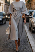 El vestido midi Nicole se destaca por sus suaves mangas de linterna y el corte midi que saca partido a la figura. Hecho con material de alta calidad, proporciona una sensación de confort en cualquier ocasión. Perfecto para el trabajo, celebraciones o cenas, este vestido ofrece un aspecto elegante. Con detalles sutiles y líneas marcadas, se convierte en una prenda atemporal muy valorada.