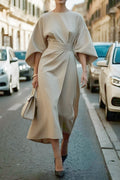 Nicole - Vestido Midi con Mangas de Linterna para Mujeres
